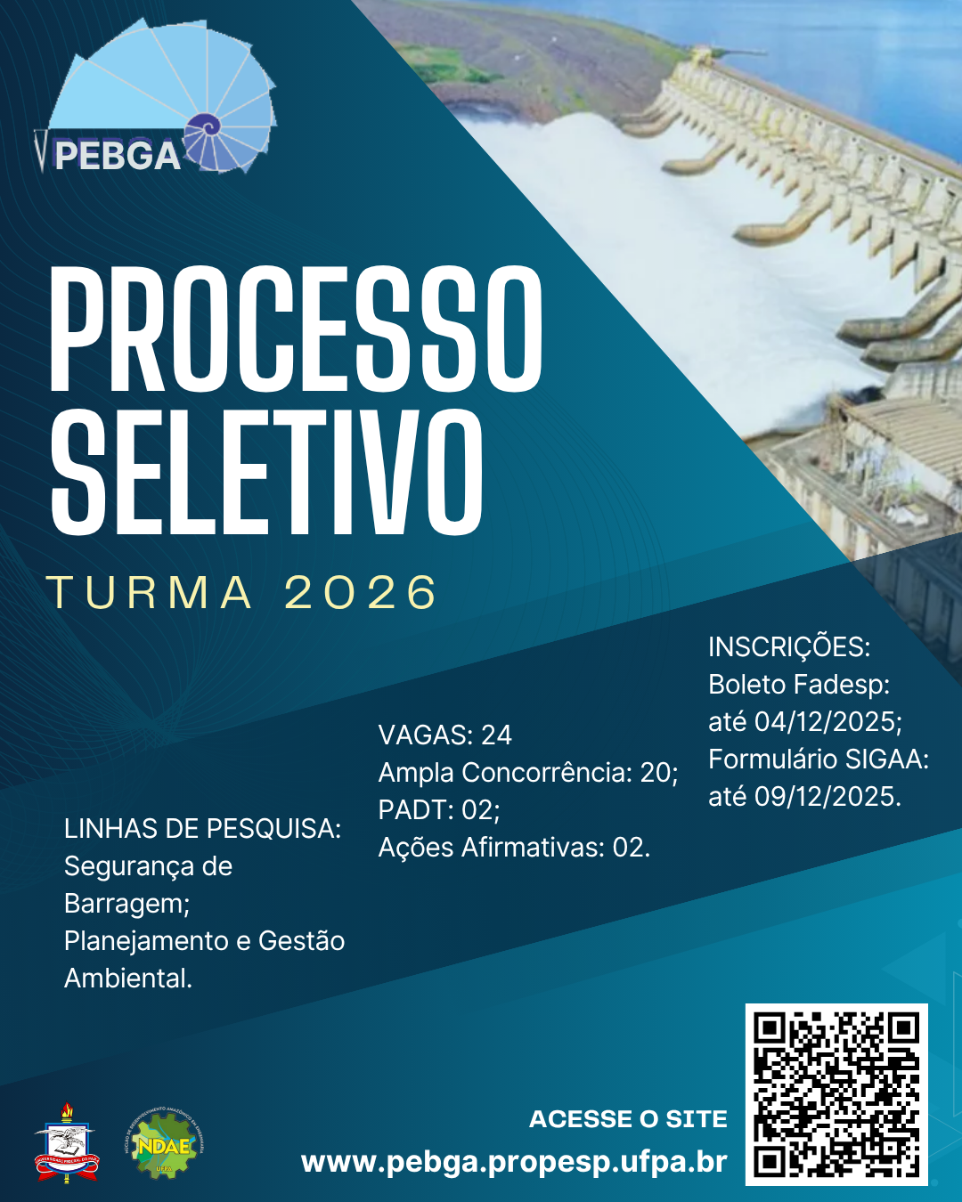 O Programa de Pós-graduação em Engenharia de Barragem e Gestão Ambiental (PEBGA) da Universidade Federal do Pará (UFPA) torna público o Edital nº 01/2025 para seleção de candidatos ao Mestrado Profissional, com ingresso previsto para o primeiro semestre de 2026.