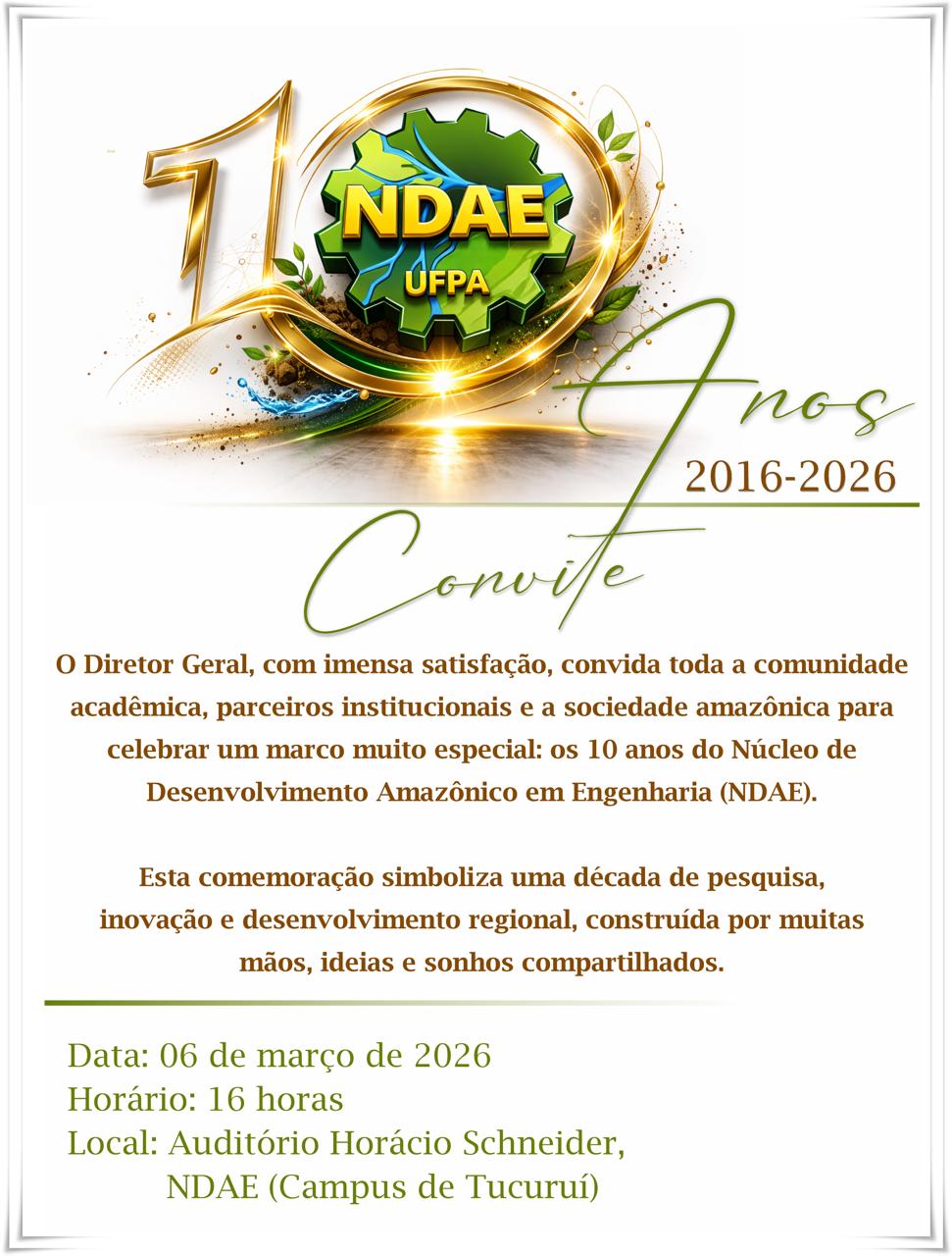 Para marcar esta data, convidamos a comunidade acadêmica e a sociedade em geral para a Solenidade Comemorativa alusiva à primeira década de atuação do Núcleo, reafirmando seu compromisso com o desenvolvimento científico, tecnológico e social da Amazônia.
