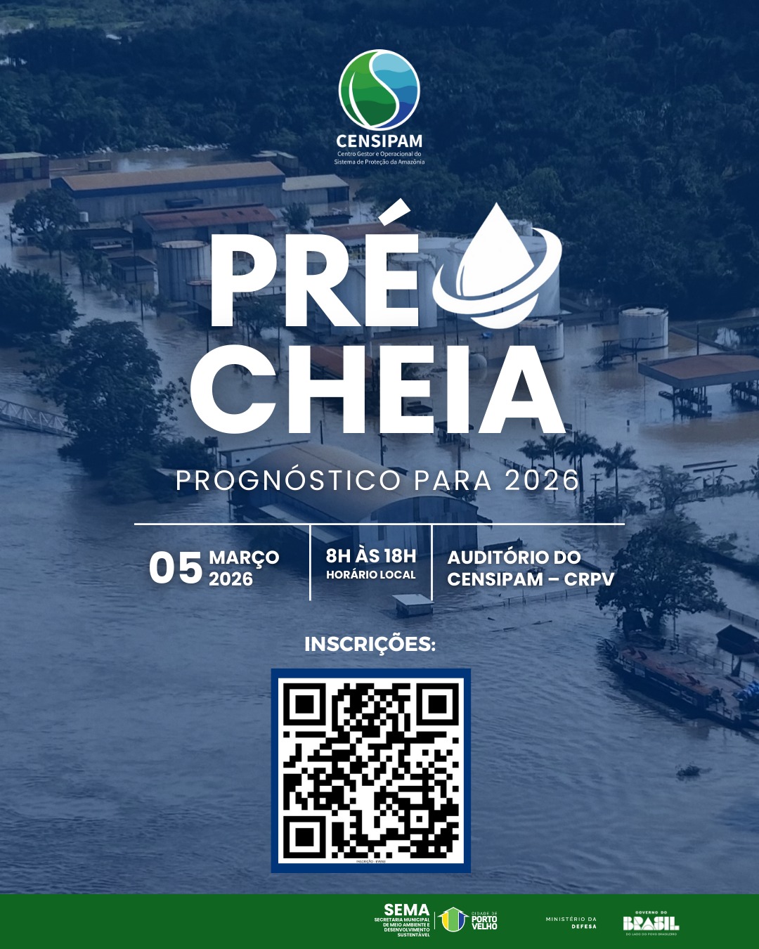 Será realizado no dia 05 de março de 2026, em Porto Velho, o eventoPré-Cheia: Prognóstico Hidrometeorológico para 2026”, em formato híbrido (presencial e online), promovido pelo Núcleo de Hidrologia – COPER/PV, do Centro Regional de Porto Velho.